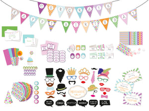 Essentials Party Bundle - Party Bunting, Invitations, favors, photo booth props and much more - Digital Download