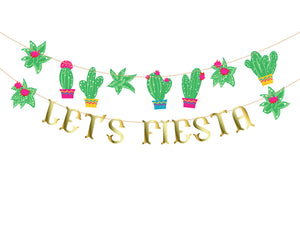 Mexican Cactus Party Bunting + Let's Fiesta Banner - Digital Design
