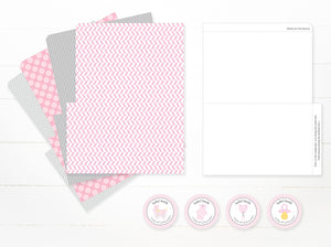 Baby Shower Party Bags and tags – PINK & GREY- PDF - Instant download