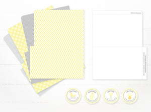 Baby Shower Party Bags and tags – YELLOW & GREY- PDF - Instant download